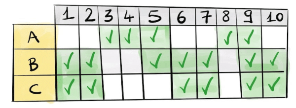 Come criterio per selezionare chi assumere potremmo utilizzare quello della performance – che è un criterio molto lineare – e quindi assumere nell’ordine prima B, poi C e infine A. Questo criterio, fino a poco tempo fa l’unico preso in considerazione dalle aziende e ancora oggi largamente utilizzato, risponde perfettamente ad una logica lineare di standardizzazione. Se però osserviamo nel dettaglio le risposte date dai tre candidati notiamo una cosa: è vero che B e C hanno risposto correttamente a un numero maggiore di domande, ma hanno saputo risolvere sostanzialmente gli stessi problemi ma soprattutto NON hanno entrambi saputo risolvere alcuni problemi… problemi che invece A sa risolvere! Di conseguenza, se invece del criterio della performance utilizzassimo quello della resilienza, allora sarebbe meglio selezionare B e A in quanto soluzione che garantisce la maggiore diversità e ovvero quella con il campo dell’efficacia più ampio!